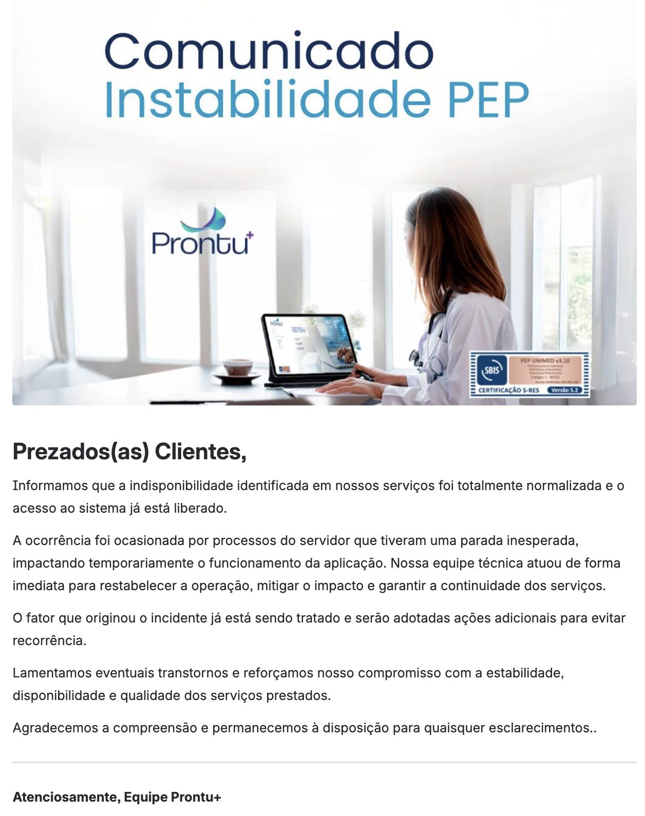 Comunicado de Indisponibilidade PEP – RESOLVIDO